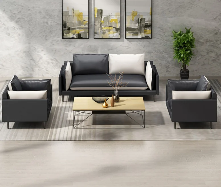 Nedorogo - Креативный кожаный диван для офиса, простой современный деловой прием, для трех человек, железный чайный столик, комбинированный костюм